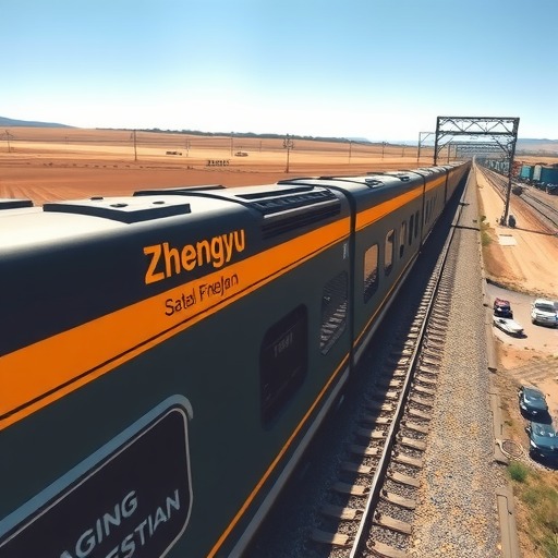 5月5日中午,经过12天的运行,一辆满载着哈萨克斯坦当地农贸产品的国际货运班列,伴随着嘹亮的汽笛声,缓缓驶入位于新乡经开区的国际陆港铁路货运场站。